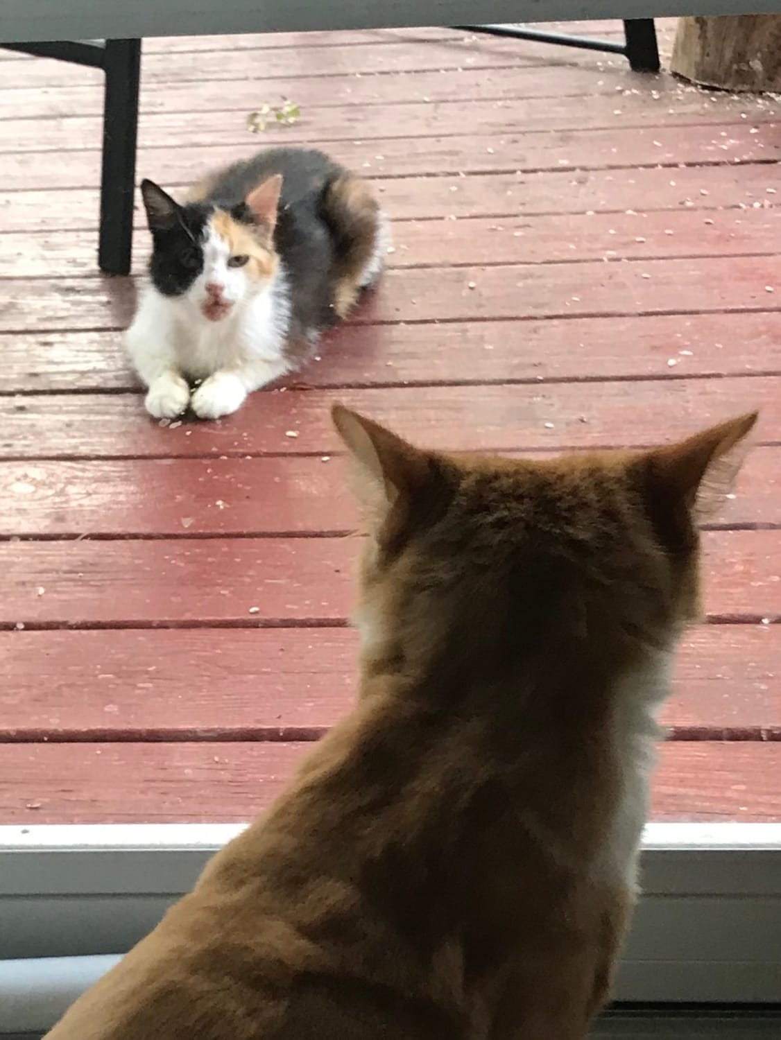 Before she ever trusted the porch, we’d see her lounging in our park-like backyard, watching us from a distance.
